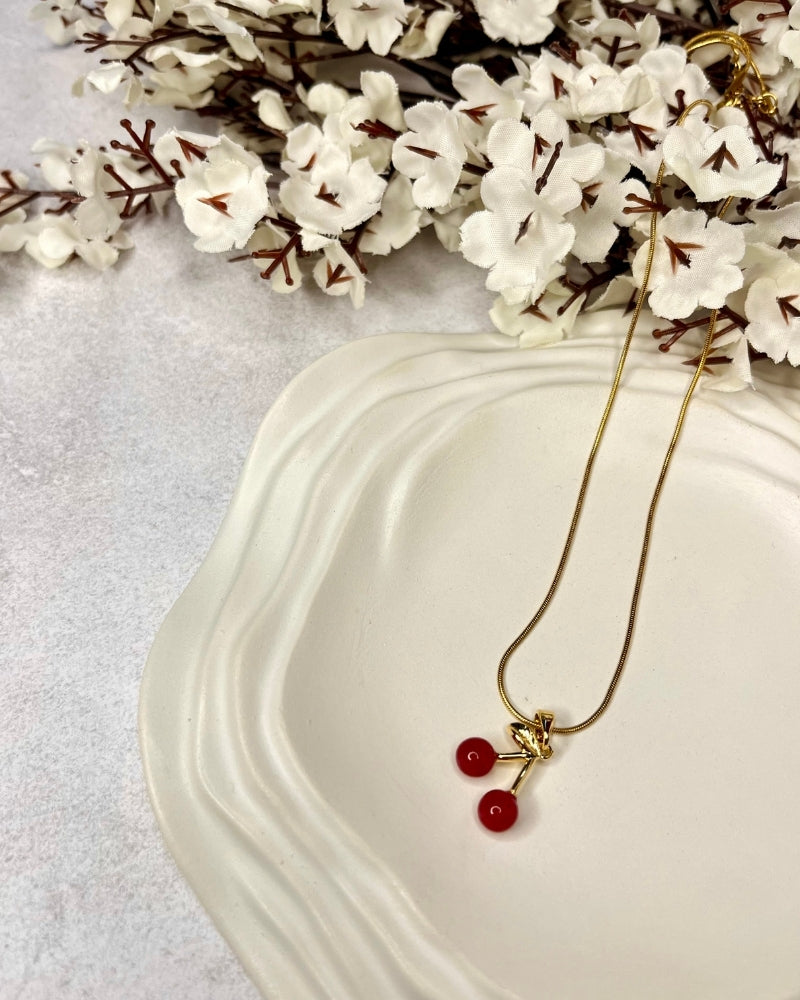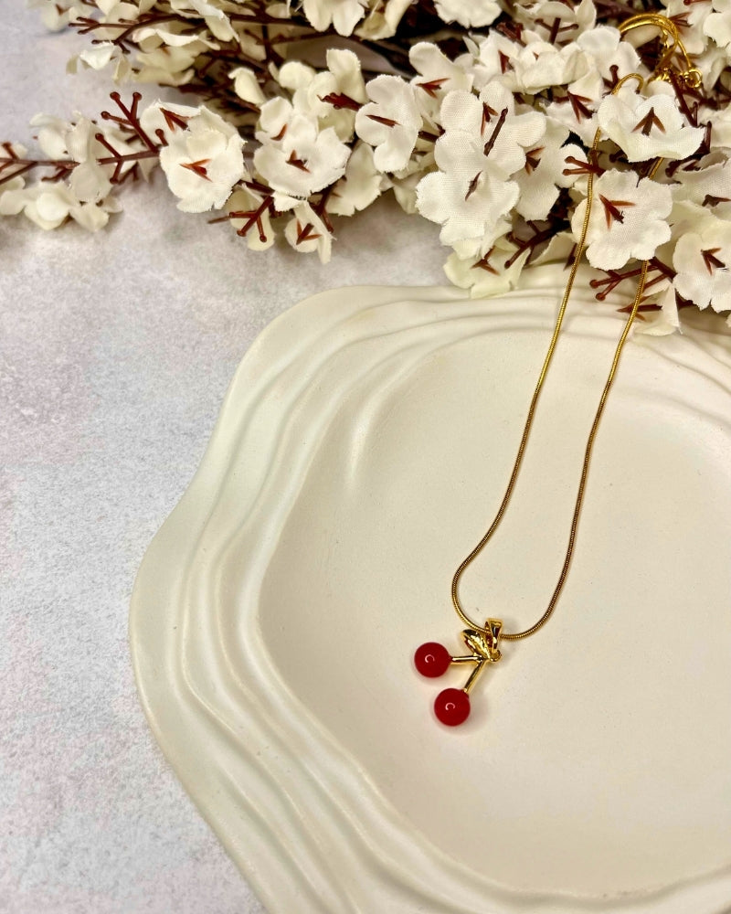 Our cherry-shaped pendant is more than just a playful accessory, it’s the prettiest reminder to take life easy and find joy in everything. This piece is designed to make you smile!